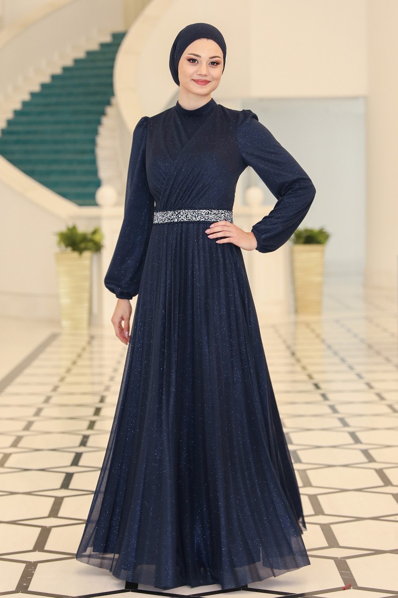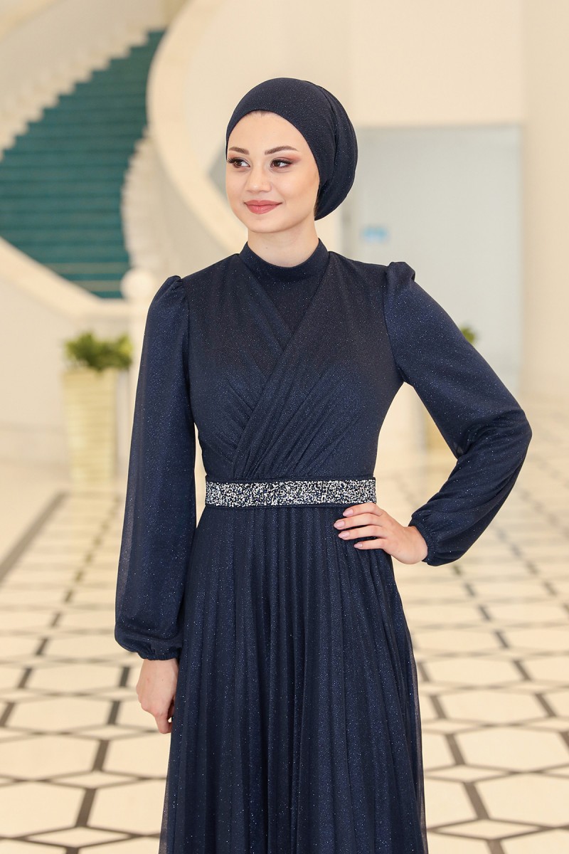 Dila Büyük Beden Tesettür Abiye - Lacivert
