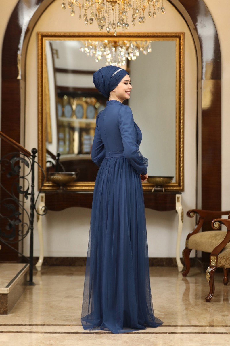 Efsane Büyük Beden Tesettür Abiye - İndigo
