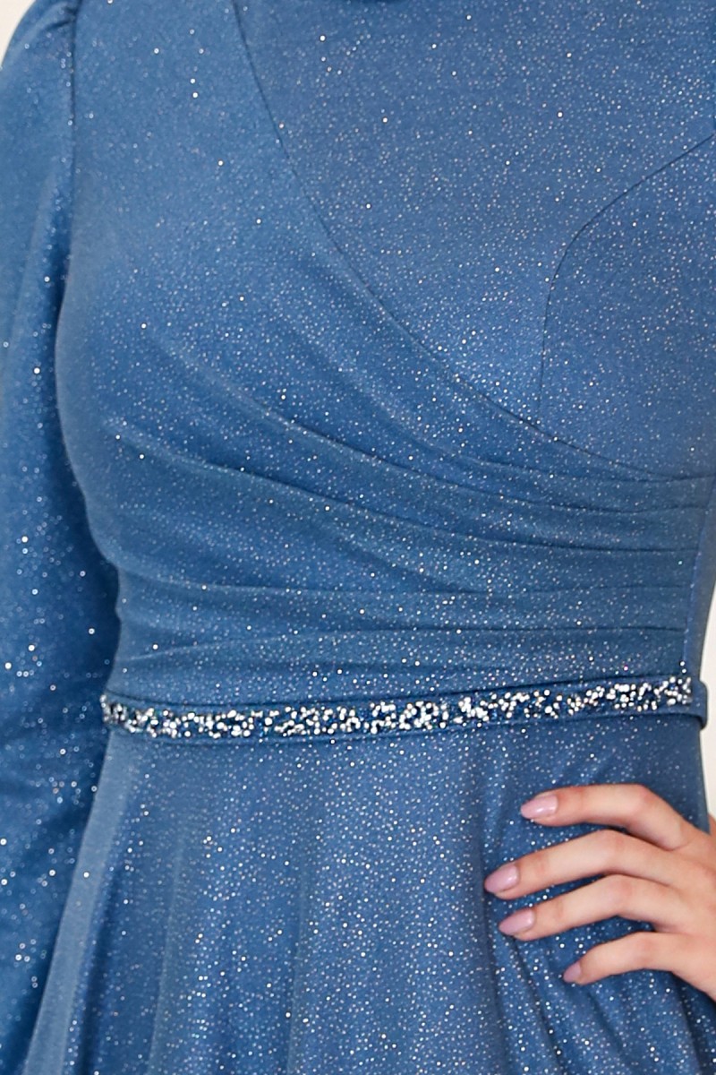 Simli parıltılı simli tül kumaştan üretilmiştir. Belinde taş kemer detayı bulunmaktadır. Kalıplarımız tam bedendir ve kullandığınız bedeni almanız uygundur. Beden konusunda beden tablomuza bakarak doğru bedeni sipariş verebilirsiniz.