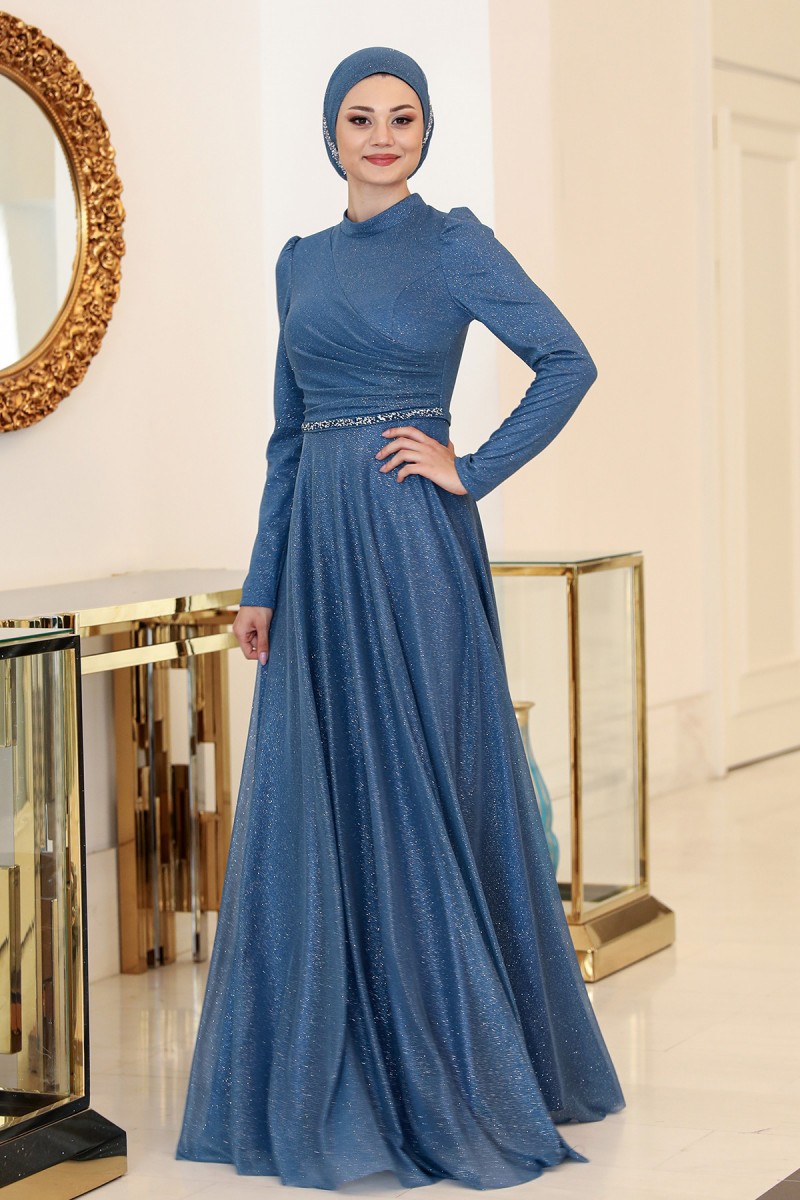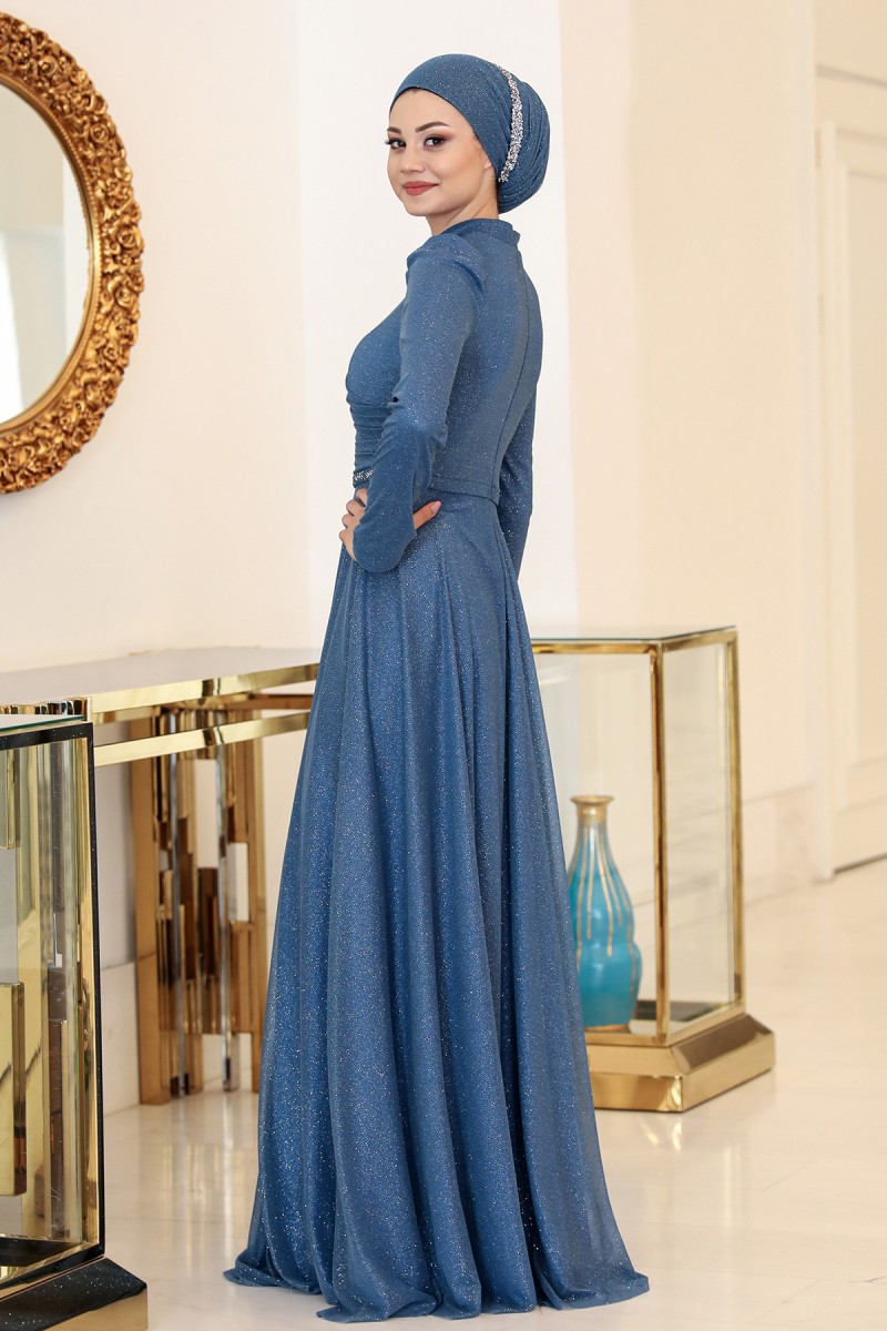 Işıl Büyük Beden Tesettür Abiye - İndigo