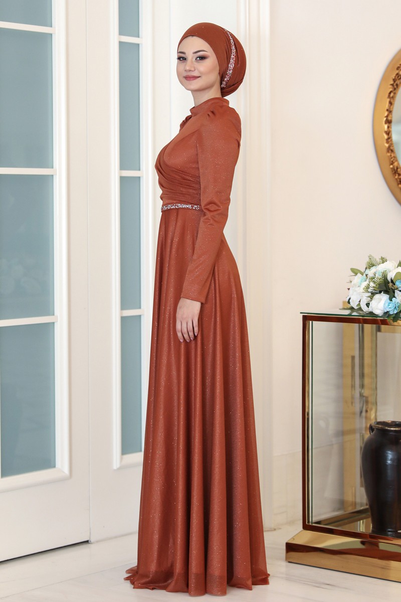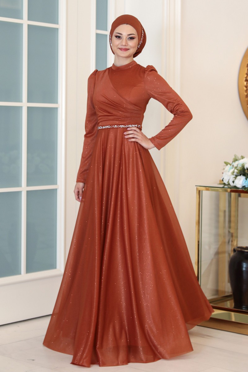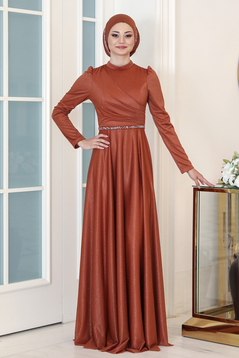 Işıl Büyük Beden Tesettür Abiye - Soğan Kabuğu