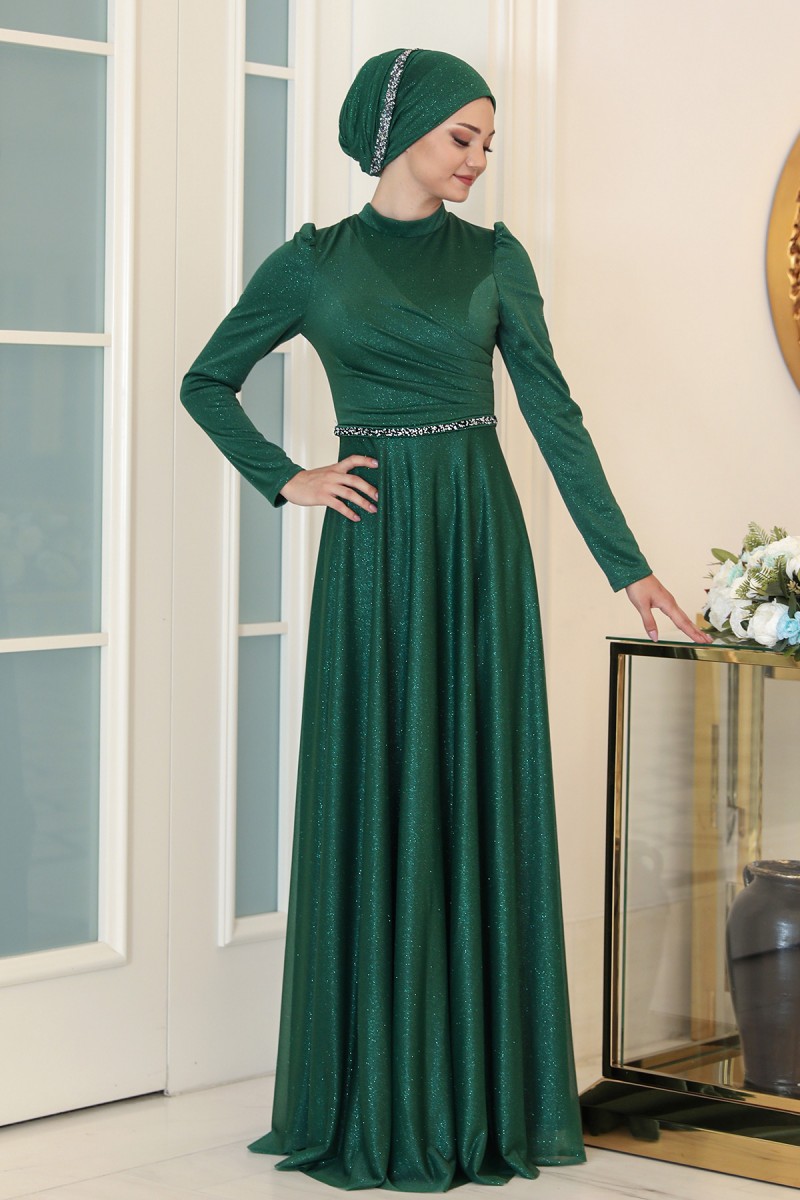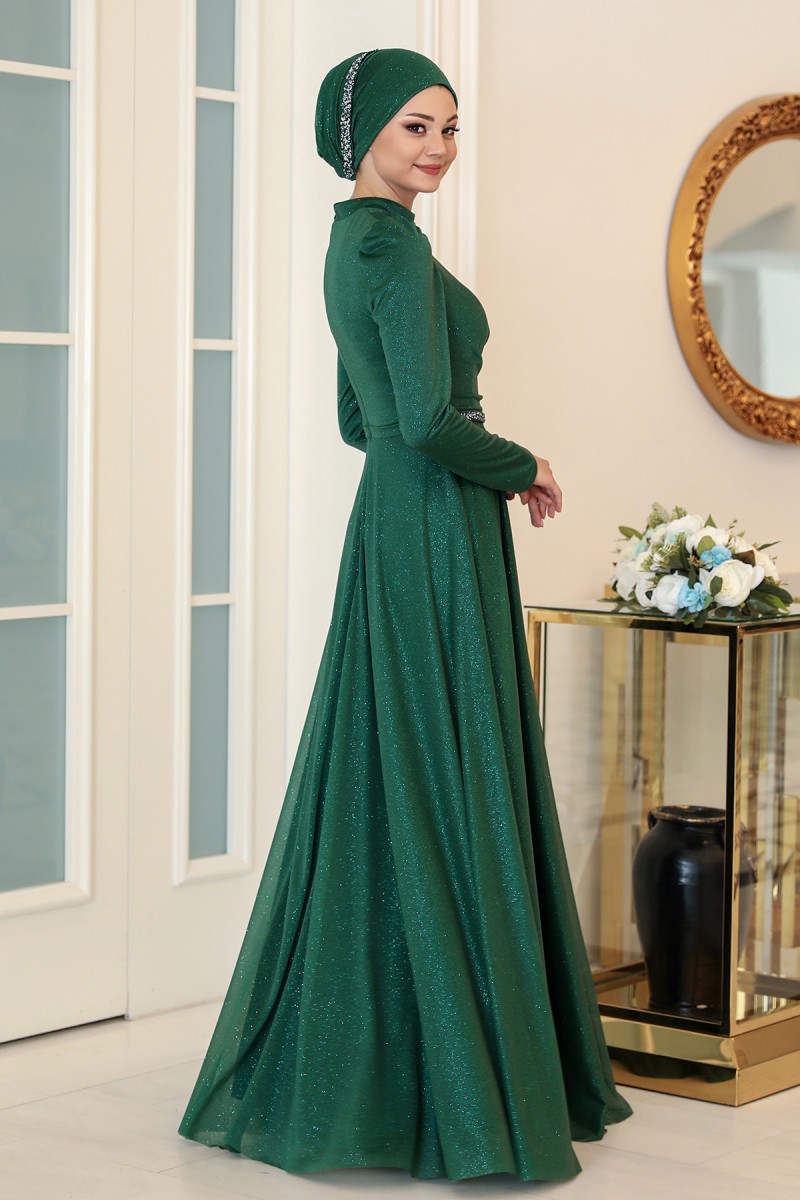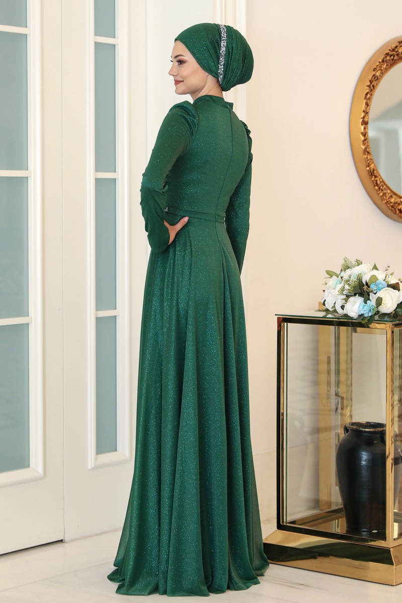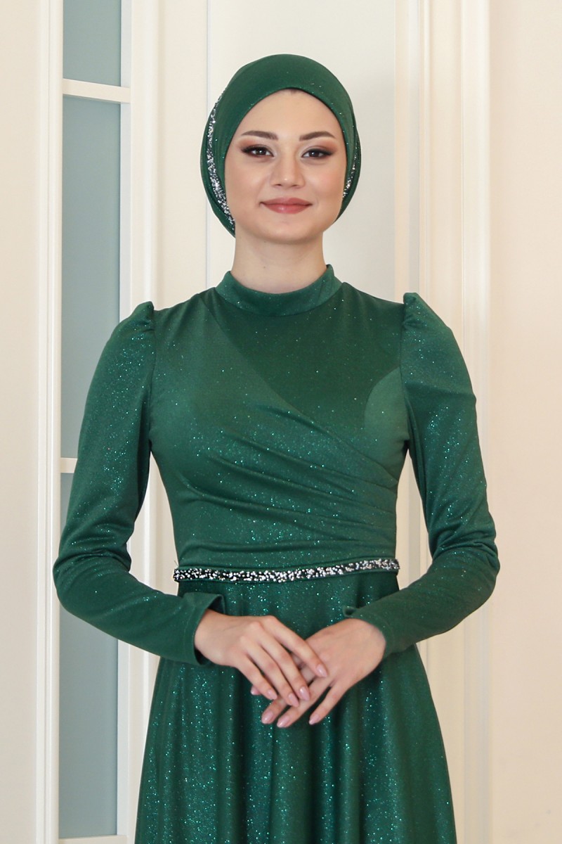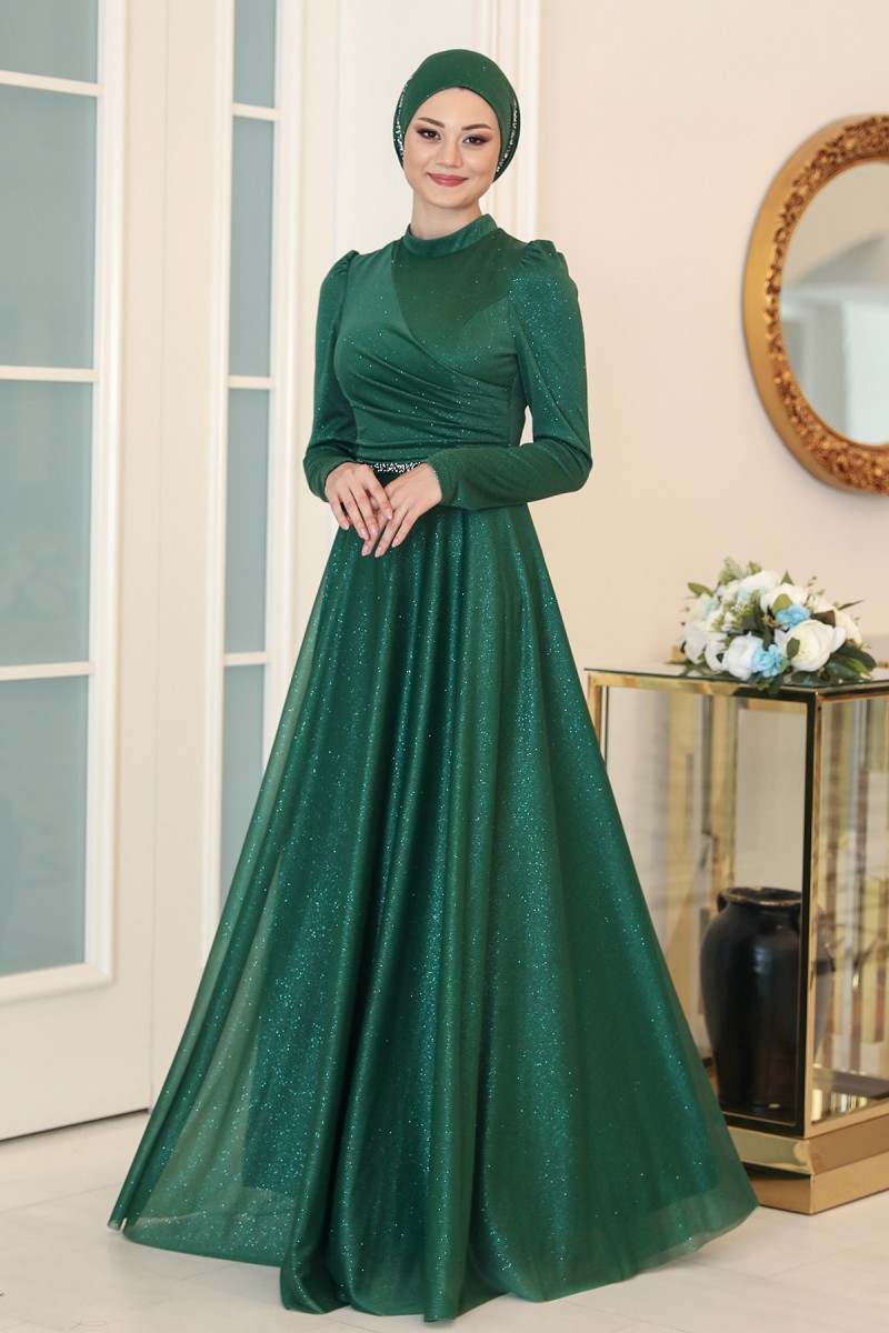 Işıl Büyük Beden Tesettür Abiye - Zümrüt
