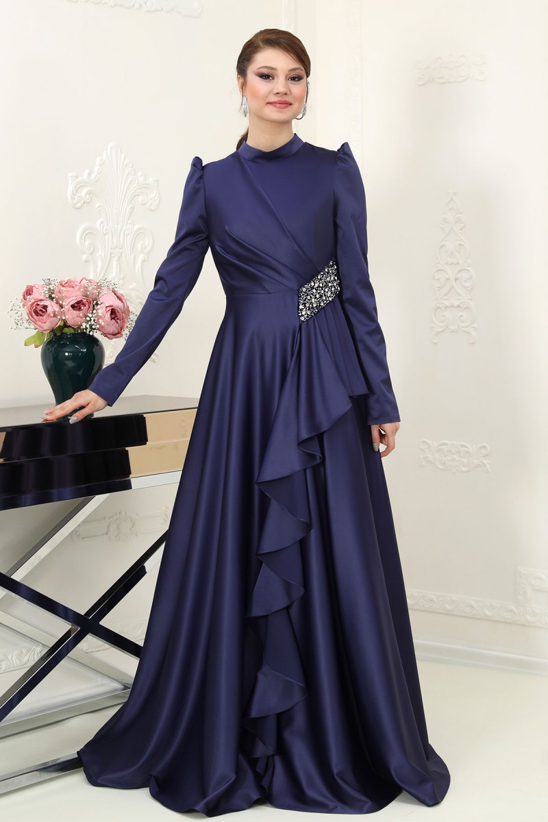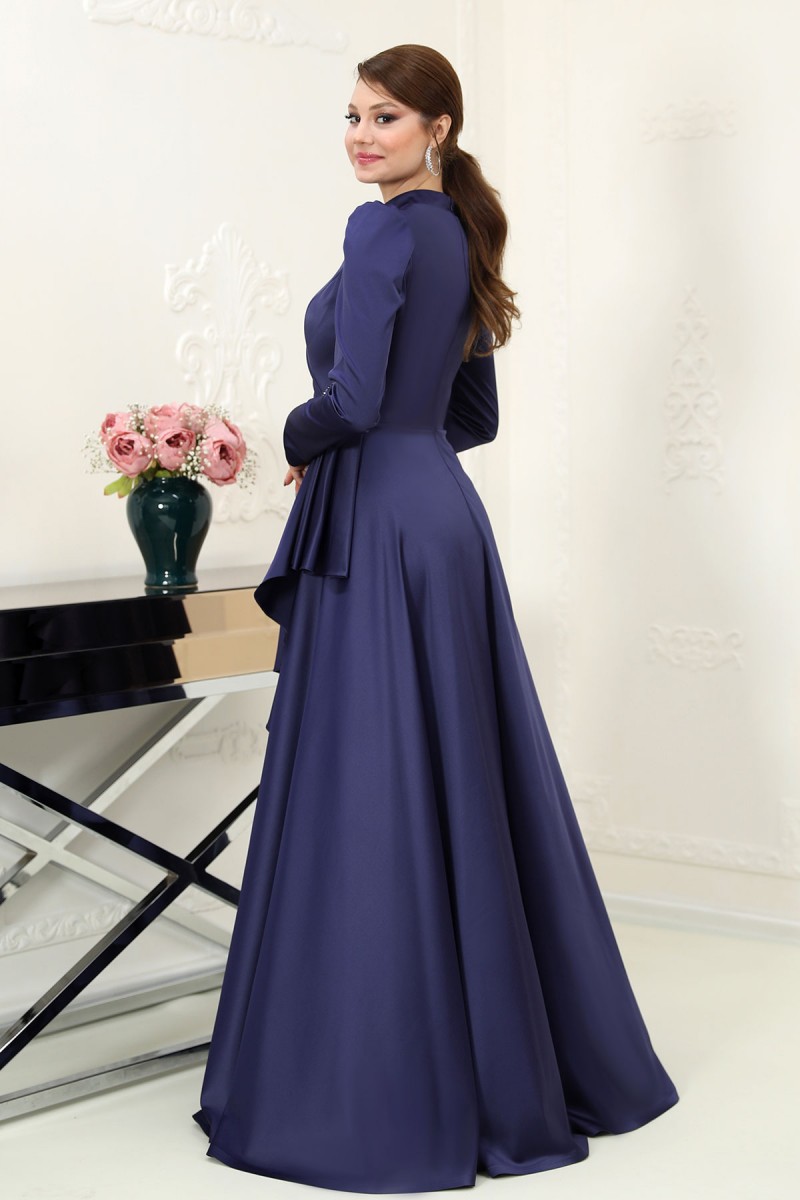 Nazende Saten Tesettür Abiye - Lacivert