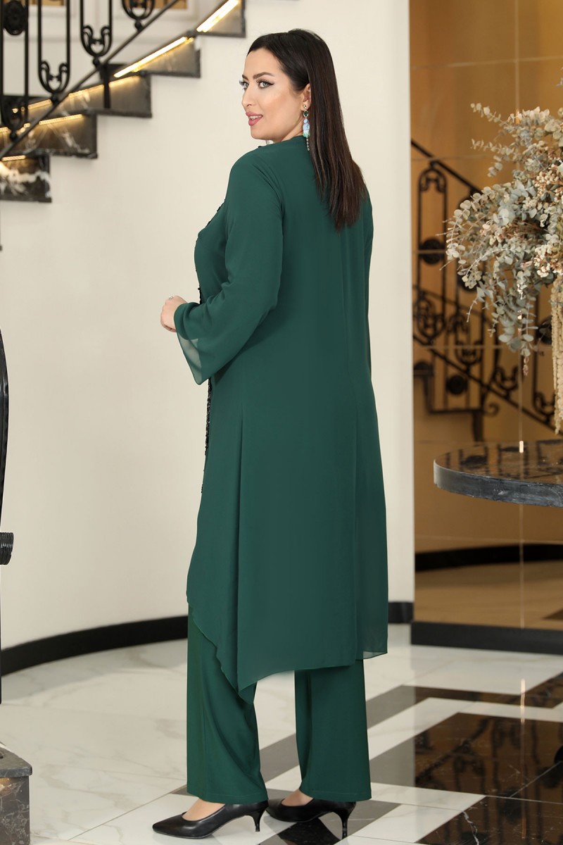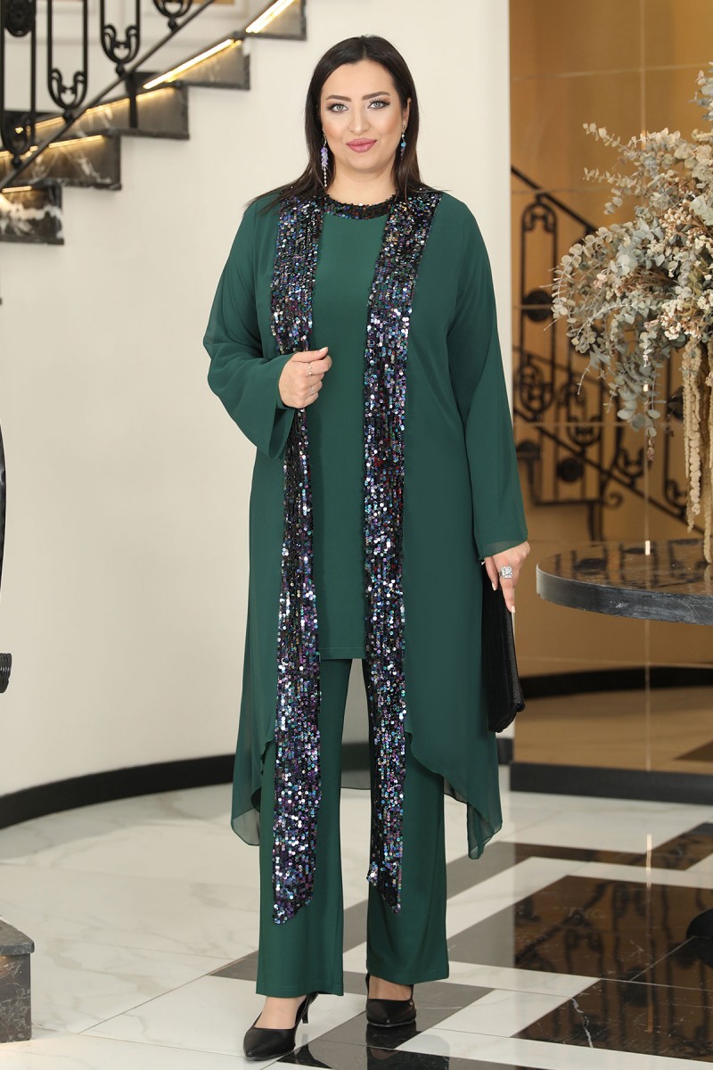 Rengin 3'lü Büyük Beden Tesettür Abiye Takım - Zümrüt